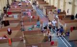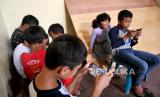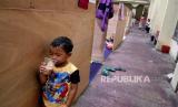 Aktivitas anak-anak pengungsi warga Krinjing di Barak Pengungsian Deyangan, Magelang, Jawa Tengah, Jumat (8/1). Jumlah pengungsi warga lereng Gunung Merapi di Magelang mencapai 625 orang. Meningkatkan aktivitas gunung sepekan terakhir menambah jumlah warga yang masuk barang pengungsian. (FOTO : Wihdan Hidayat / Republika)
