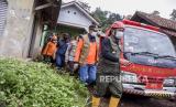 REPUBLIKA.CO.ID, SUMEDANG -- Kepala BNPB Letjen TNI Doni Monardo dan Gubernur Jawa Barat Ridwan Kamil, meninjau lokasi bencana tanah longsor di Desa Cihanjuang, Kecamatan Cimanggung, Kabupaten Sumedang, Ahad (10/1). Peninjauan tersebut bertujuan untuk melihat kondisi lokasi bencana dan memastikan keselamatan petugas dalam mengevakuasi korban bencana tanah longsor serta pemetaan pergerakan tanah guna mengantisipasi bencana longsor susulan. Sebanyak 11 warga di Desa Cihanjuang, Sumedang, Jawa Barat, tewas dalam bencana tanah longsor yang terjadi pada Sabtu malam, 9 Januari 2021. Danramil Kecamatan Cimanggung Kapt Inf Setio Pribadi dan Kepala Seksi Kedaruratan dan Logistik BPBD Kabupaten Sumedang turut menjadi korban.