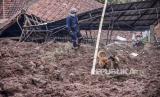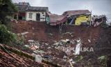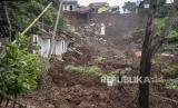 Sejumlah rumah rusak akibat tanah longsor di Desa Cihanjuang, Kecamatan Cimanggung, Kabupaten Sumedang, Ahad (10/1). (FOTO : ABDAN SYAKURA/REPUBLIKA)
