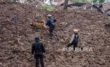 Petugas gabungan melakukan pencarian korban yang tertimbun tanah longsor di Desa Cihanjuang, Kecamatan Cimanggung, Kabupaten Sumedang, Ahad (10/1). (FOTO : ABDAN SYAKURA/REPUBLIKA)