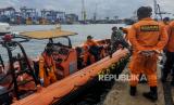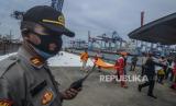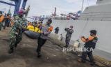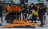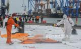REPUBLIKA.CO.ID, JAKARTA -- Petugas Tim SAR Gabungan mengevakuasi kantong jenazah penumpang pesawat Sriwijaya Air SJ182 rute Jakarta - Pontianak yang jatuh di perairan Pulau Seribu di Dermaga JICT, Tanjung Priok, Jakarta Utara, Ahad (10/1). Sebanyak lima kantong jenazah berisi potongan tubuh penumpang pesawat Sriwijaya Air SJ 182 ditemukan dan langsung diserahkan kepada Tim DVI RS Polri untuk diidentifikasi lebih lanjut.