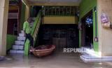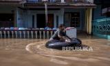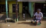 Warga beraktivitas di depan rumahnya yang tergenang banjir Kampung Bojongasih, Kecamatan Dayeuhkolot, Kabupaten Bandung, Senin (11/1). Banjir luapan Sungai Citarum tersebut diakibatkan oleh tingginya intensitas curah hujan yang mengguyur kawasan Bandung Raya pada Ahad (10/1) sore hingga malam hari dan membuat permukiman di kawasan tersebut terendam banjir setinggi 50 sentimeter hingga satu meter. Foto: Abdan Syakura/Republika (FOTO : ABDAN SYAKURA/REPUBLIKA)