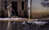 Sejumlah warga beraktivitas saat banjir menggenangi Kampung Bojongasih, Kecamatan Dayeuhkolot, Kabupaten Bandung, Senin (11/1). Banjir luapan Sungai Citarum tersebut diakibatkan oleh tingginya intensitas curah hujan yang mengguyur kawasan Bandung Raya pada Ahad (10/1) sore hingga malam hari dan membuat permukiman di kawasan tersebut terendam banjir setinggi 50 sentimeter hingga satu meter. Foto: Abdan Syakura/Republika (FOTO : ABDAN SYAKURA/REPUBLIKA)