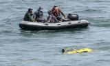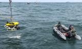 REPUBLIKA.CO.ID, JAKARTA -- Robot bawah laut atau Remotely Operated Vehicle (ROV) diturunkan dari KRI Rigel-933 untuk melakukan pencarian korban dan puing dari pesawat Sriwijaya Air SJ 182 yang jatuh di perairan Kepulauan Seribu, Jakarta, Senin (11/1/2021).