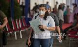 Keluarga korban pesawat Sriwijaya Air SJ 182 melakukan tes rapid saat penyerahan data ante mortem guna keperluan identifikasi di RS Polri, Jakarta, Senin (11/1). Tim Disaster Victim Identification (DVI) RS Polri Kramat Jati telah menerima 40 sampel DNA dan 16 kantong jenazah dari keluarga korban pesawat Sriwijaya Air SJ 182. Republika/Thoudy Badai (FOTO : Republika/Thoudy Badai)