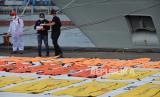 Tim Disaster Victim Identification (DVI) Polri melakukan identifikasi jenazah korban pesawat Sriwijaya Air SJ 182 di Dermaga JICT 2, Jakarta, Senin (11/1). (FOTO : Edwin Dwi Putranto/Republika)