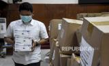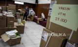 Petugas kesehatan mendata logistik untuk pelaksanaan vaksinasi Covid-19 di Aula Dinas Kesehatan Kota Bandung, Jalan Supratman, Kota Bandung, Selasa (12/1). (FOTO : ABDAN SYAKURA/REPUBLIKA)