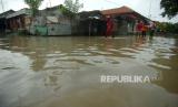REPUBLIKA.CO.ID, BREBES -- Warga mengamati tanggul sungai Pemali yang jebol di Desa Kedungtukang, Brebes, Jawa Tengah, Rabu (13/1). Tanggul Sungai Pemali yang jebol akibat intensitas hujan yang tinggi tersebut menyebabkan ratusan rumah terendam banjir setinggi 30 centimeter hingga satu meter.