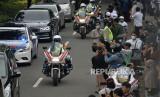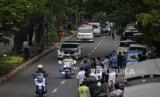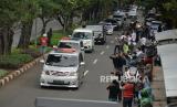 Iring-iringan mobil jenazah yang membawa almarhum Syekh Ali Jaber melintasi Jalan Cempaka Putih, Jakarta, Kamis (14/1), untuk menuju Pondok Pesantren Daarul Quran. Syekh Ali Jaber wafat di usia 44 tahun karena sakit. Almarhum dimakamkan di pemakaman Pondok Pesantren Daarul Quran, Tangerang, Banten. Foto : Edwin Putranto/Republika (FOTO : Edwin Dwi Putranto/Republika)