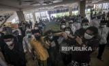 Sejumlah kerabat dan keluarga melaksankan shalat jenazah Syekh Ali Jaber di Pondok Pesantren Darul Quran, Cipondoh, Kota Tangerang, Banten, Kamis (14/1). (FOTO : Republika/Putra M. Akbar)