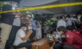 Sejumlah kerabat dan keluarga menangis saat pemakaman Syekh Ali Jaber di Pondok Pesantren Darul Quran, Cipondoh, Kota Tangerang, Banten, Kamis (14/1). (FOTO : Republika/Putra M. Akbar)