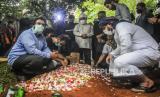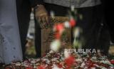 Sejumlah kerabat dan keluarga menabur bunga di kuburan Syekh Ali Jaber di Pondok Pesantren Darul Quran, Cipondoh, Kota Tangerang, Banten, Kamis (14/1). (FOTO : Republika/Putra M. Akbar)
