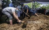 REPUBLIKA.CO.ID, TANGERANG -- Proses pemakaman Syekh Ali Jaber di Pondok Pesantren Darul Quran, Cipondoh Tangerang, Kamis (14/1). Sementara petugas pemakaman terus mempersiapkan makam, tahlil bergema mengiringi prose pemakaman jenazah almarhum