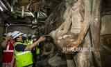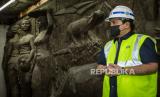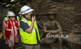 REPUBLIKA.CO.ID, Menteri BUMN Erick Thohir meninjau lokasi penemuan relief di gedung Sarinah, Jakarta, Kamis (14/1/2021). Relief tersebut akan direstorasi dan dipamerkan kepada publik saat pemugaran gedung Sarinah rampung.