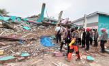 Petugas mengamati bangunan RS Mitra Manakarra yang roboh pascagempa bumi, di Mamuju, Sulawesi Barat, Jumat (15/1/2021). (FOTO : Antara/Akbar Tado)