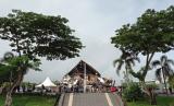 Warga mengamati Gedung Kantor Gubernur Sulawesi Barat yang rusak akibat gempa bumi, di Mamuju, Sulawesi Barat, Jumat (15/1/2021). (FOTO : Antara/Akbar Tado)