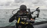Prajurit Kopaska TNI AL menyelam untuk melanjutkan operasi SAR pesawat Sriwijaya Air nomor penerbangan SJ 182, di perairan Kepulauan Seribu, Jakarta, Jumat (14/1/2021). Tim SAR gabungan pada hari ketujuh kembali melakukan pencarian Cockpit Voice Recorder (CVR) atau perekam suara kokpit dari pesawat Sriwijaya Air Penerbangan SJ 182 yang jatuh di antara Pulau Laki dan Pulau Lancang pada Sabtu (9/1/2021). (FOTO : ANTARA FOTO/Muhammad Adimaja)