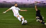 Karim Benzema dari Real Madrid (kiri) mengecoh kiper Athletic Bilbao, Unai Simon dan berhasil mencetak gol pada laga semifinal Piala Super Spanyol antara Real Madrid dan Athletic Bilbao di stadion La Rosaleda, Malaga, Spanyol, Jumat (15/1) dini hari WIB. (FOTO : AP / Jose Breton)