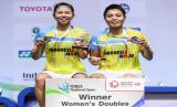 REPUBLIKA.CO.ID, Pasangan ganda putri Indonesia Greysia Polii dan Apriyani Rahayu berhasil menjadi juara pada turnamen Thailand Open 2021 di Impact Arena, Bangkok, Thailand, Ahad (17/1). Pasangan ganda putri Indonesia berhasil menjadi juara setelah menang dengan skor 21-15, 21-13 melawan ganda putri Thailand Jongkolphan Kititharakul dan Rawinda Prajongjai.