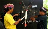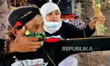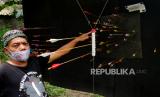 Pemanah menunjukkan target saat latihan rutin panahan tradisional atau jemparingan di Paguyuban Jemparingan Panahan Tradisional Warastra, Kepuharjo, Sleman, Yogyakarta, Ahad (17/1). (FOTO : Wihdan Hidayat / Republika)