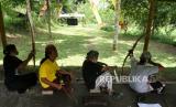Warga melakukan latihan rutin panahan tradisional atau jemparingan di Paguyuban Jemparingan Panahan Tradisional Warastra, Kepuharjo, Sleman, Yogyakarta, Ahad (17/1). (FOTO : Wihdan Hidayat / Republika)