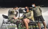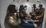 Tenaga kesehatan dari Batalyon Intai Amfibi-1 Korps Marinir TNI AL (Yontaifib-1) Serda APM Nurmansyah (tengah) memberikan instruksi kepada sejumlah prajurit Yontaifib-1 di dalam ruangan dekompresi (chamber decompression) milik Yontaifib-1 usai melakukan penyelaman dalam operasi SAR pesawat Sriwijaya Air di Pantai Tanjung Kait, Tangerang, Banten, Ahad (17/1/2021). (FOTO : MUHAMMAD ADIMAJA/ANTARA FOTO)