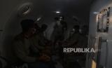 Prajurit Batalyon Intai Amfibi-1 Korps Marinir TNI AL (Yontaifib-1) duduk di dalam ruangan dekompresi (chamber decompression) milik Yontaifib-1 usai melakukan penyelaman dalam operasi SAR pesawat Sriwijaya Air PK-CLC nomor penerbangan SJ 182 di Pantai Tanjung Kait, Tangerang, Banten, Ahad (17/1). (FOTO : MUHAMMAD ADIMAJA/ANTARA FOTO)