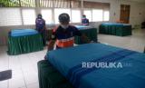 REPUBLIKA.CO.ID, JAKARTA -- Gugus Tugas RW 003 Kelurahan Pondok Labu merapikan tempat tidur yang akan digunakan untuk isolasi mandiri di Gedung Sasana Krida Karang Taruna, di Jalan Bango III , Pondok Labu, Jakarta, Senin (18/1).