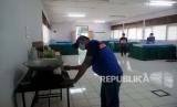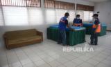 Gugus Tugas RW 003 Kelurahan Pondok Labu merapikan barang- barang dalam ruangan untuk isolasi mandiri di Gedung Sasana Krida Karang Taruna, di Jalan Bango III , Pondok Labu, Jakarta, Senin (18/1). Gugus COVID-19 RW 003, Kelurahan Pondok Labu menyipakan Gedung Sasana Krida Karang Taruna sebagai tempat isolasi mandiri untuk warga yang terkonfirmasi positif COVID-19 dengan fasilitas lima tempat tidur. Gedung isolasi ini akan digunakan untuk antisipasi apabila Wisma Atlet dan rumah sakit rujukan penuh.Prayogi/Republika. (FOTO : Prayogi/Republika.)