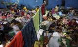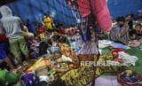 Warga korban banjir mengungsi di gedung serba guna kelurahan di Sampangan, Pekalongan, Jawa Tengah, Selasa (19/1/2021). Pemerintah setempat mendistribusikan logistik bantuan berupa makanan dan obat-obatan kepada sekitar 500 warga korban banjir di beberapa titik lokasi pengungsian dan mengimbau untuk tetap mematuhi protokol kesehatan COVID-19 secara ketat. ANTARA  (FOTO : ANTARA FOTO)