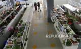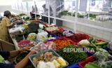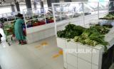 REPUBLIKA.CO.ID, YOGYAKARTA -- Pembeli berbelanja dengan pembatas plastik transparan di los sayur mayur, Pasar Prawirotaman, Yogyakarta, Selasa (19/1).