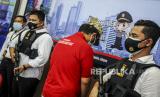 REPUBLIKA.CO.ID, JAKARTA -- JM, pria yang pernah dirawat di RSD Wisma Atlet diperlihatkan saat dirilis di Polres Metro Jakarta Pusat, Selasa (19/1).