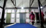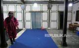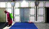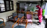 Pemuda Kampung Tanggap Bencana (KTB) Gamelan menyemprot rumah duka di Gamelan, Yogyakarta, Rabu (20/1). Setiap ada orang meninggal, KTB Gamelan akan menyemprot disinfektan rumah duka. Hal ini untuk memberikan kenyamanan penghuni rumah duka usai menjadi tempat berkumpul. Serta untuk mencegah penyebaran Covid-19. (FOTO : Wihdan Hidayat / Republika)