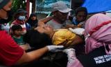 REPUBLIKA.CO.ID, MAMUJU -- Tim medis membawa Syahgani (6), warga Desa Orobatu yang terluka karena tertimpa puing dampak gempa bumi di Tapalang, Mamuju, Sulawesi Barat, Rabu (20/1/2021).