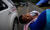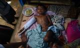 Syahgani (6), warga Desa Orobatu yang terluka karena tertimpa puing dampak gempa bumi menunggu dirujuk ke rumah sakit di Tapalang, Mamuju, Sulawesi Barat, Rabu (20/1/2021). Syahgani dan ibunya Nurliati dirujuk ke rumah sakit untuk mendapatkan perawatan lebih lanjut, sementara ayahnya meninggal dunia saat gempa magnitudo 6,2 mengguncang daerah tersebut. (FOTO : ANTARA/Sigid Kurniawan)
