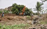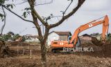 Pekerja menggunakan alat berat menyelesaikan proyek pembangunan Kolam Retensi Andir di Jalan Katapang Andir, Kecamatan Baleendah, Kabupaten Bandung, Kamis (21/1). (FOTO : ABDAN SYAKURA/REPUBLIKA)