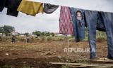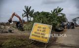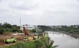 Warga beraktivitas di sekitar proyek pembangunan Kolam Retensi Andir di Jalan Katapang Andir, Kecamatan Baleendah, Kabupaten Bandung, Kamis (21/1). (FOTO : ABDAN SYAKURA/REPUBLIKA)