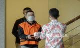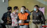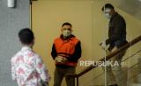 Tersangka dari pihak swasta Harry Sidabuke (kanan) berjalan meninggalkan ruangan usai menjalani pemeriksaan di Gedung Merah Putih KPK, Jakarta, Kamis (21/1). KPK memeriksa Harry Sidabuke untuk penyidikan perkara dugaan suap terkait pengadaan bantuan sosial (bansos) di Kementerian Sosial untuk penanganan pandemi Covid-19. (FOTO : Republika/Thoudy Badai)