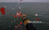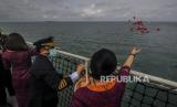 REPUBLIKA.CO.ID, JAKARTA -- Sejumlah keluarga dan kerabat korban jatuhnya pesawat Sriwijaya Air SJ 182 saat menabur bunga di Perairan Kepulauan Seribu, Jakarta, Jumat (22/1).