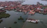 Foto udara kondisi wilayah rumah warga dan lahan pertanian tergenang banjir rob di Pekalongan, Jawa Tengah, Jumat (22/1). (FOTO : Harviyan Perdana Putra/ANTARA )