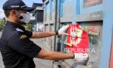 Seorang petugas kepabeanan menyegel truk pengangkut limbah sarung tangan medis bekas pakai yang diselundupkan dari Malaysia di Kantor Bea dan Cukai Dumai di Dumai, Riau, Jumat (22/1). (FOTO : Aswaddy Hamid/ANTARA )