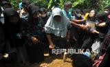 Keluarga dan kerabat menghadiri pemakaman Angga Fernanda Afriyon di Sungai Sapiah, Padang, Sumatera Barat, Sabtu (23/1/2021). Angga Fernanda Afriyon merupakan korban Pesawat Sriwijaya Air SJ-182 rute Jakarta-Pontianak yang berhasil diidentifikasi oleh Tim Disaster Victim Identification (DVI) Polri dan diserahkan kepada keluarga untuk dimakamkan di kampung halamannya di Padang. (FOTO : Antara/Iggoy el Fitra)
