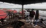 Pengunjung menikmati pemandangan di area wisata Air Hitam Taman Nasional Sebangau, Palangkaraya, Kalimantan Tengah, Ahad (24/1/2021). Destinasi wisata yang menyuguhkan keindahan pemandangan alam susur sungai air hitam dan berbagai macam kuliner tersebut merupakan destinasi favorit wisatawan saat berlibur ke Kota Palangkaraya. (FOTO : ANTARA/Makna Zaezar)