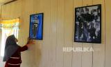 Seorang ahli waris dari Datuk Laksamana Raja Di Laut IV merapikan tata letak foto di dinding rumah peninggalan Laksamana Ali Akbar di Kecamatan Bukit Batu, Bengkalis, Riau, Minggu (24/1/2021). Rumah peninggalan Laksamana Ali Akbar atau digelar Datuk Laksamana Raja Di Laut IV yang dibangun sekitar tahun 1908-1928 tersebut saat ini masih terawat dengan baik dan menjadi salah satu situs budaya Melayu Riau yang selalu dikunjungi wisatawan. (FOTO : ANTARA FOTO/Aswaddy Hamid)
