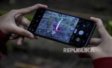 Jurnalis mengambil gambar menggunakan gawai tumbuhan Amorphopallus Titanium atau bunga bangkai raksasa yang mengalami fase mekar di Taman Hutan Raya (Tahura) Ir Djuanda, Jalan Ir H Juanda, Bandung, Senin (25/1). (FOTO : ABDAN SYAKURA/REPUBLIKA)