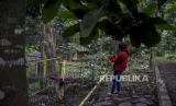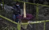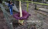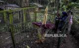 Pengunjung mengamati tumbuhan Amorphopallus Titanium atau bunga bangkai raksasa yang mengalami fase mekar di Taman Hutan Raya (Tahura) Ir Djuanda, Jalan Ir H Juanda, Bandung, Senin (25/1). (FOTO : ABDAN SYAKURA/REPUBLIKA)