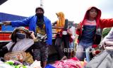 REPUBLIKA.CO.ID, YOGYAKARTA -- Pengungsi penduduk rentan pulang dari Barak Pengungsian Glagaharjo menggunakan mobil bak terbuka, Sleman, Yogyakarta, Selasa (26/1).