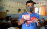 Warga menunjukan buku tabungan saat mengambil Bantuan Sosial Tunai (BST) di SMPN 3, Jakarta, Selasa (26/1). Pencairan bansos Bantuan Sosial Tunai (BST) di Provinsi DKI Jakarta dilakukan secara bertahap mulai Januari-April 2021. Pencairan bansos di Jakarta yang dilakukan Bank DKI bersama Dinsos DKI Jakarta dibatasi hanya untuk 500 orang penerima per titik per hari demi menghindari penyebaran pandemi COVID-19.Prayogi/Republika (FOTO : Prayogi/Republika.)