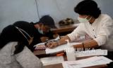 Warga mengisi dokumen persyaratan saat mengambil Bantuan Sosial Tunai (BST) di SMPN 3, Jakarta, Selasa (26/1). Pencairan bansos Bantuan Sosial Tunai (BST) di Provinsi DKI Jakarta dilakukan secara bertahap mulai Januari-April 2021. Pencairan bansos di Jakarta yang dilakukan Bank DKI bersama Dinsos DKI Jakarta dibatasi hanya untuk 500 orang penerima per titik per hari demi menghindari penyebaran pandemi COVID-19. (FOTO : Prayogi/Republika.)
