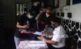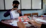 Petugas mengecek dokumen persyaratan warga saat mengambil Bantuan Sosial Tunai (BST) di SMPN 3, Jakarta, Selasa (26/1). Pencairan bansos Bantuan Sosial Tunai (BST) di Provinsi DKI Jakarta dilakukan secara bertahap mulai Januari-April 2021. Pencairan bansos di Jakarta yang dilakukan Bank DKI bersama Dinsos DKI Jakarta dibatasi hanya untuk 500 orang penerima per titik per hari demi menghindari penyebaran pandemi COVID-19.Prayogi/Republika (FOTO : Prayogi/Republika.)